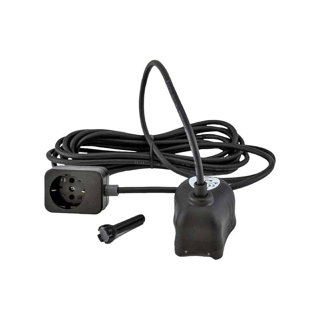 De watersensor schakelt de dompelpomp automatisch in zodra het waterniveau stijgt en weer uit wanneer het niveau daalt. Met de meegeleverde magneetsleutel stel je eenvoudig de inschakel- en nalooptijd in. Zo bepaal je zelf hoe snel de pomp reageert en voorkom je pendelen of drooglopen.